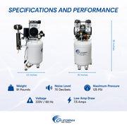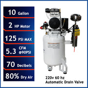 CALIFORNIA AIR TOOLS 10020DCAD-22060 2.0 Hp Ultra Quiet Oil-Free 10-Gallon Air Compressor with 80% Air Dryer and Auto Drain 220v 60hz