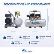 CALIFORNIA AIR TOOLS 2010A Ultra Quiet, Oil-Free, Lightweight 1.0 Hp 2 Gallon Air Compressor