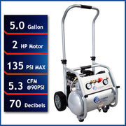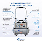 CALIFORNIA AIR TOOLS 5020W Powerful 2.0 Hp Ultra Quiet & Oil-Free Rugged 5 Gallon Air Compressor