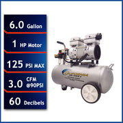 CALIFORNIA AIR TOOLS 6010LFC Ultra Quiet 1.0 Hp, Oil-Free, Lightweight 6-Gallon Air Compressor (Industrial Series)