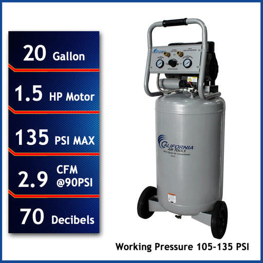 California Air ToolsCalifornia Air Tools 20020 Ultra Quiet, Oil-Free and Powerful 2.0 HP Portable 20-Gallon Air Compressor The California Air Tools 20020 Ultra Quiet ...